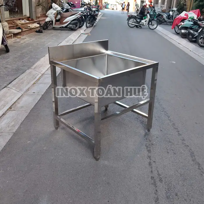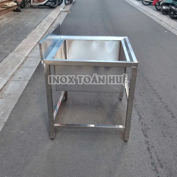 Chậu rửa đơn 1 hố inox công nghiệp là một thiết bị bếp công nghiệp được làm bằng thép không gỉ (inox), có một hố rửa duy nhất, dùng để rửa thực phẩm, dụng cụ nhà bếp hoặc vệ sinh thiết bị trong môi trường công nghiệp hoặc bếp ăn tập thể như nhà hàng, khách sạn, trường học, bệnh viện, nhà máy chế biến thực phẩm.