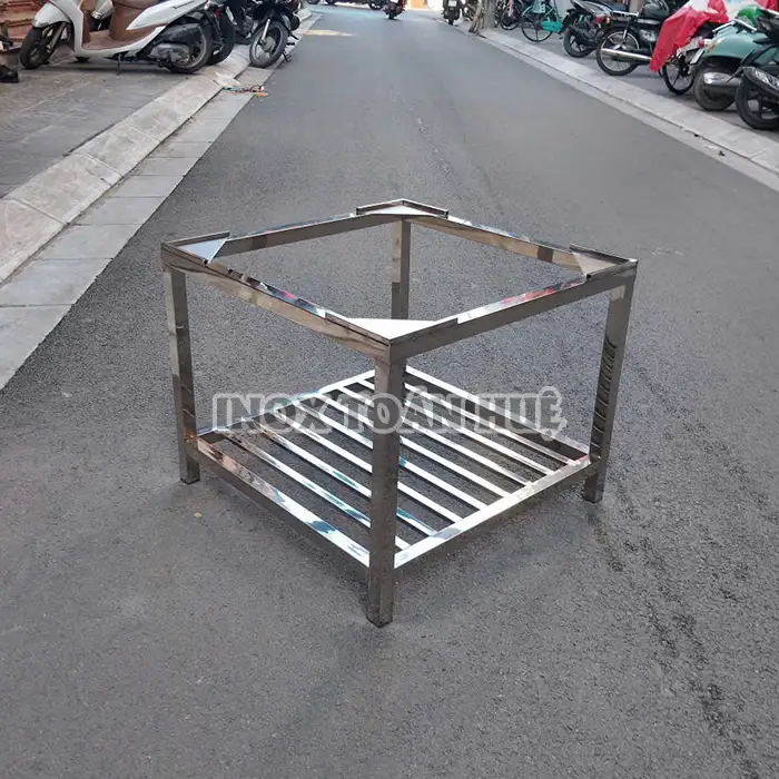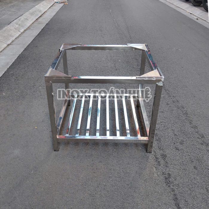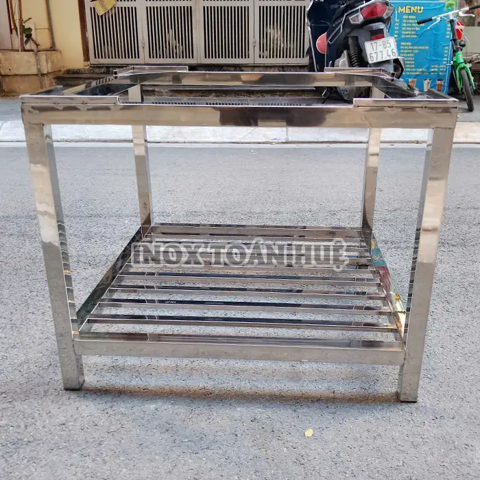 Tầng dưới: làm từ nan inox hoặc mặt phẳng inox, có thể đặt rổ, chậu hoặc các vật dụng khác