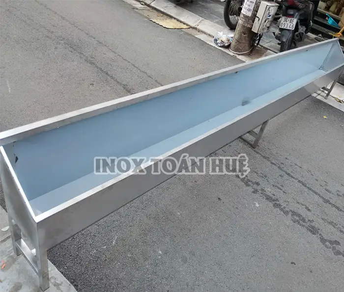 - Thiết kế: Dạng máng liền dài, có thể có vòi xả nước thủ công.
